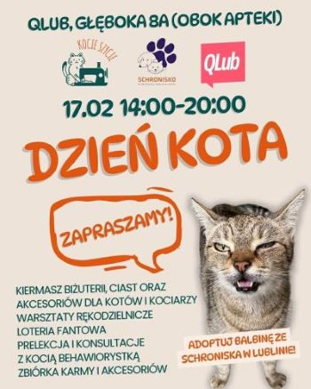 Przyjdź i świętuj wspólnie z nami miłość do kotów podczas Dnia Kota!Czekają na Ciebie:• Kiermasz biżuterii, ciast oraz akcesoriów dla