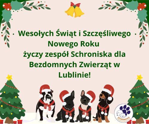Drodzy Przyjaciele Schroniska, z okazji Świąt Bożego Narodzenia pragniemy z całego serca podziękować Wam za okazane wsparcie, dobre słowo, pomocne