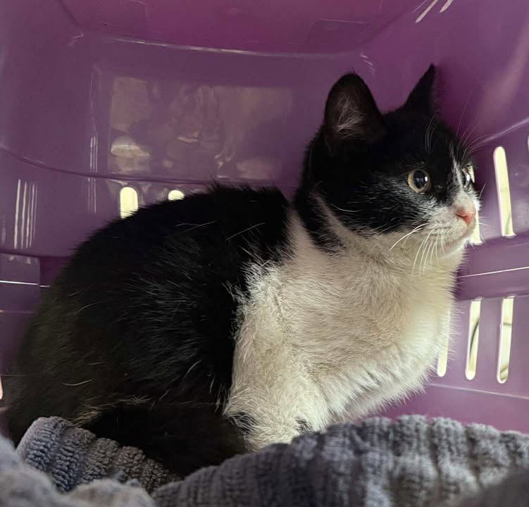 Czarno-biała Naklejka trafiła do schroniska z ul. Sielankowej.