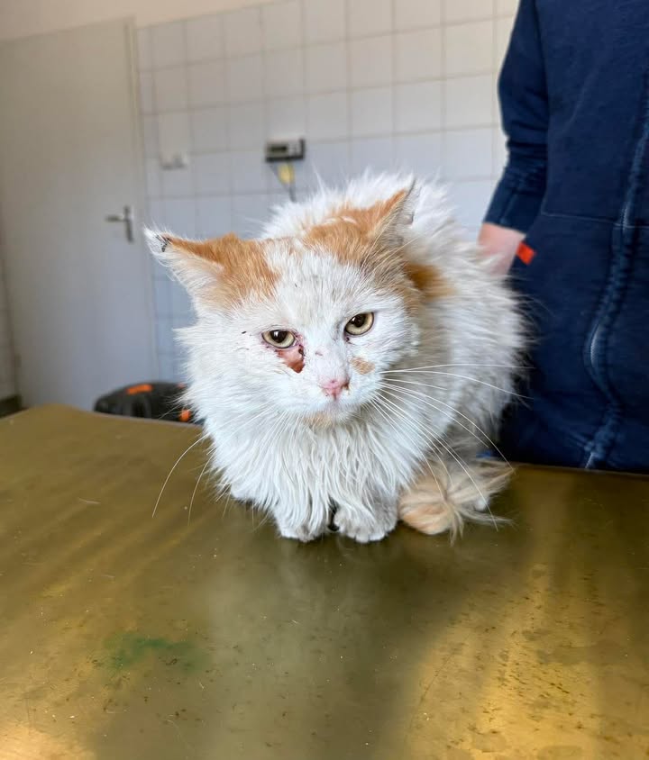 Biało-rudy Poster trafił do schroniska z ul. Porzeczkowej.