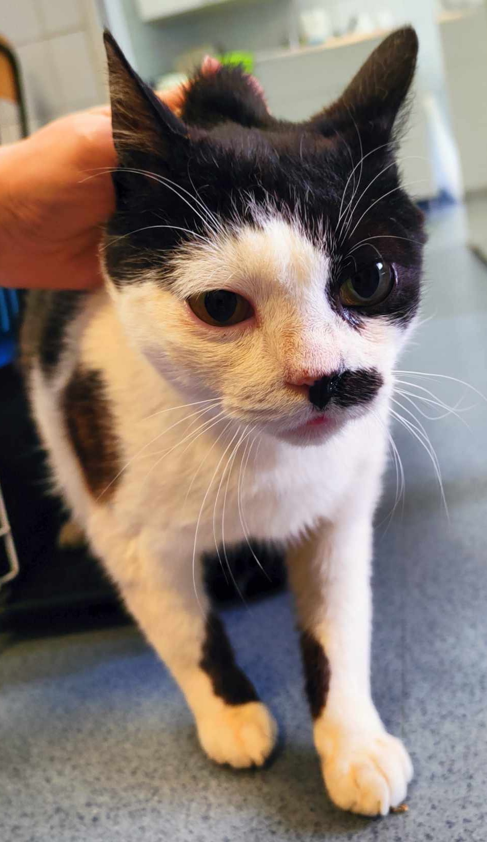 Biało-czarny Ptasiek trafił do schroniska z ul. Spiskiej.